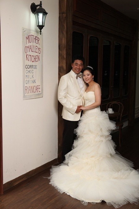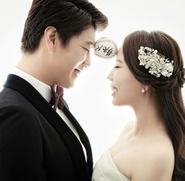 Sk 김광현이 2015년 12월 14일 서울 강남구 삼성동 인터컨디넨탈호텔에서 열린 자신의 결혼식에 앞서 신부 이상희씨와 하트 모양을 그려서.